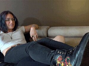 Black leather boots and black stayups (4K). Winter is coming. and so is boot season (high heels boots, of course!)to celebrate my first boot video (but not last), let's sit back in a conference chair and play with them : unzipping, rubbing, dangling...teasing only / no nudity