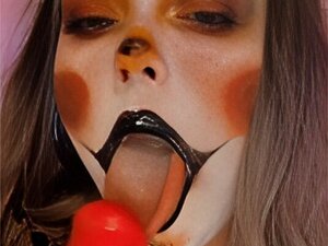 Experience the wild passion as two gorgeous girlfriends succumb to the seductive allure of an evil clown. Brace yourself for an unforgettable journey filled with forbidden desires. You won't be able to resist.
