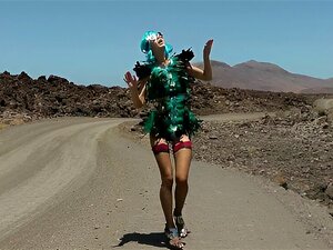 Hotkinkyjo in feather cyberpunk costume self anal fisting & prolapse at the desert road