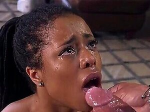 Gagging oiled Ebony babe submissive to her BFs cock