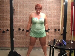 Aged Mistresse Red slams her slaves anal opening