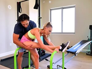 Hot blonde Emma Hix fucks a big trainers cock in the gym, Naughty babe Emma Hix is surely an expert in terms of coming up with brilliant naughty ideas in seducing her trainer John Strong in the gym. Later on, he is so aroused with her seductive moves that