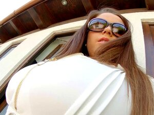 Full natural mega boobs of Lucie Wilde bounce while she rides on cock by the pool. The most beautiful huge boobs of Lucie Wilde are above all praise. Captivating babe plays with her gigantic its and sucks BF's cock. He licks her slit and fucks passionately. Be sure massive tits of Lucie Wilde will make your wanking unforgettable.