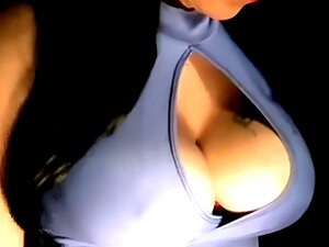 Busty MILF Eva Eats Cock For Cum, Eva Karera shows off her big round ass and enormous tits while wearing fishnet stockings with garters before she pulls off her bra and releases her huge tits and long erect nipples while rubbing her pussy. She gets on her