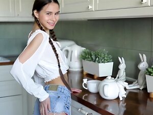 Pigtails cutie masturbates for stepdad