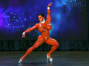 Bulky, golden-haired lady, Cheryl Blossom Lana is doing her fitness routine in pants or nude