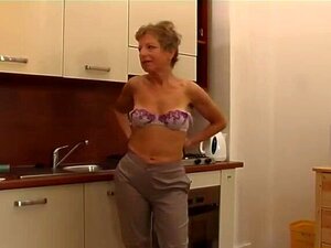 Slender Granny in Ebony Nylons Bangs