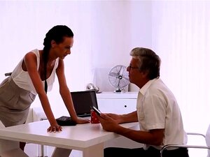 Small titted brunette's first time anal with grandpa. Grandpa seduced a cutie brunette girl with small tits, she gave him a blowjob and tried anal sex for the first time, he came into her mouth.