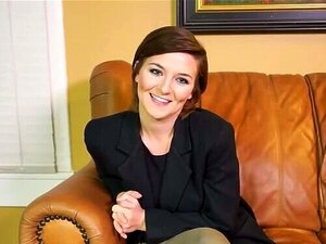 Busty amateur cutie Kylie on casting couch strips and masturbates